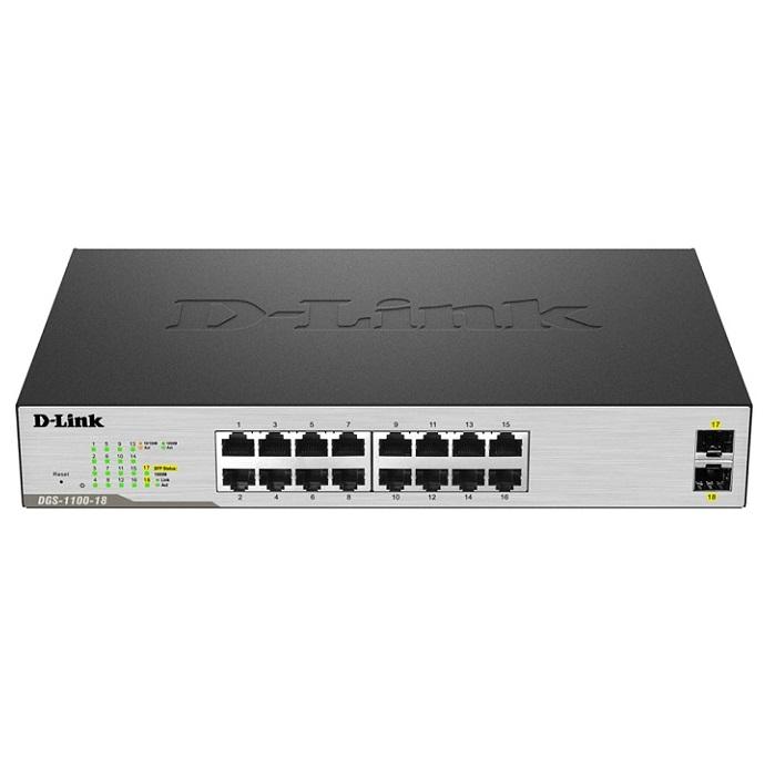 16 Port 10/100/1000Mbps + 2 SFP 1000Mbps Gigabit Smart Switch D-Link DGS-1100-18
