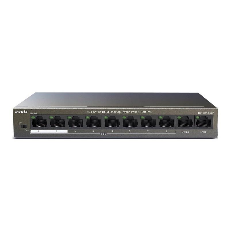 2-port 10/100Mbps + 8-port PoE Switch TENDA TEF1110P (63W)