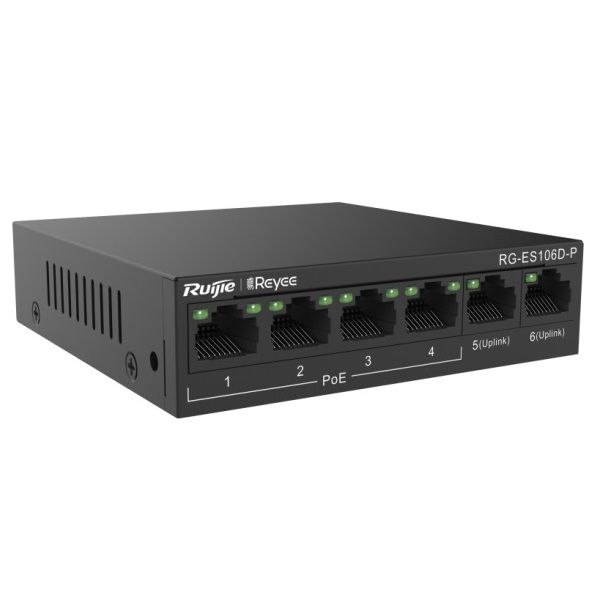 4-Port 10/100Mbps PoE + 2-Port 10/100Mbps Uplink Unmanaged Switch RUIJIE RG-ES106D-P