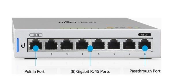 - The US-8 is a PoE Powered 8-port gigabit switch with PoE Passthrough.