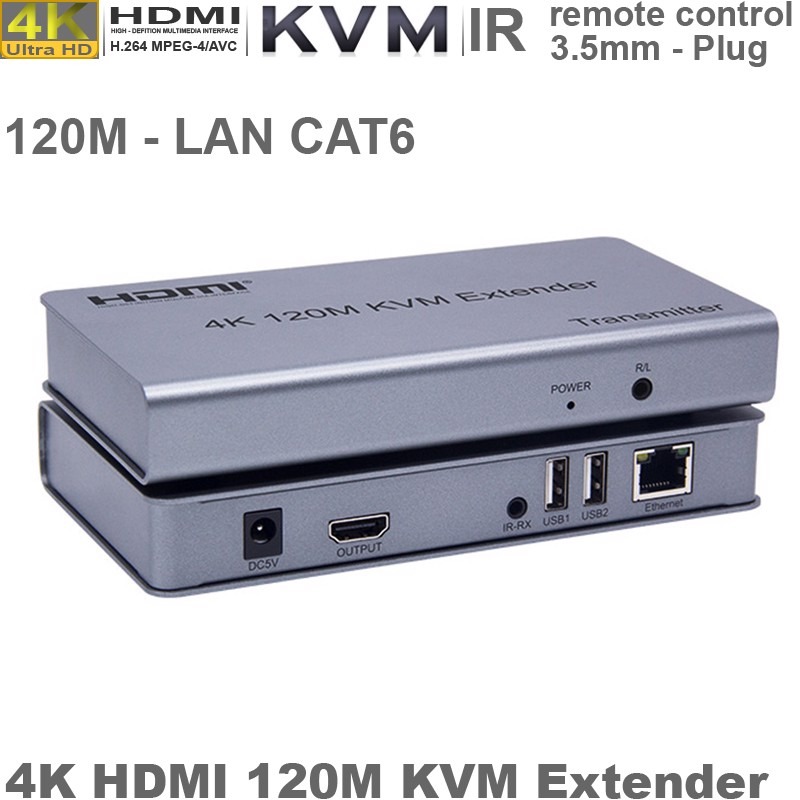 Bộ khuếch đại HDMI 4K qua dây mạng 120 mét - 4K HDMI KVM 120M I Bộ kéo dài HDMI USB qua dây mạng 120 mét