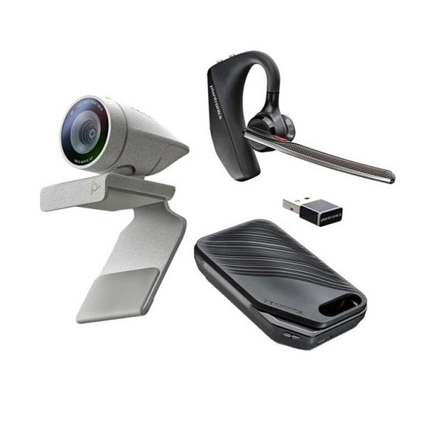 - Polycom Studio P5 Kit bao gồm camera hội nghị Studio P5 và tai nghe chống ồn không dây Stereo Voyager 5200 UC.