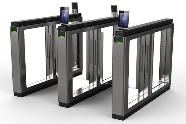 - Cổng xoay bật ngang (swing barrier) dùng để kiểm soát cửa vào ra nhận diện khuôn mặt và thẻ.