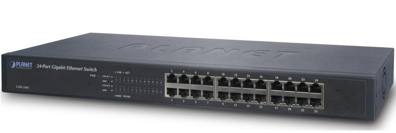 Thiết bị chuyển mạch PLANET GSW-2401 gồm 24 cổng tốc độ 10/100/1000Mbps. Thiết bị này là một chuyển mạch non-blocking và có tổng thông lượng chuyển mạch là 48Gbps hoạt động với tốc độ tương đương với tốc độ dây dẫn, cho phép triển khai linh động, khả năng kết nối mềm dẻo tới các máy chủ hay tới hệ thống chuyển mạch khác. GSW-2401 có bảng địa chỉ MAC 8K và bộ nhớ 2400KB. GSW-2401 hoạt động với tốc độ tương đương với tốc độ dây dẫn mà không làm mất gói tin. Thông lượng chuyển mạch cao của GSW-2401 mang lại lợi ích cho người dùng khi nâng cấp mạng lên tốc độ Gigabit.