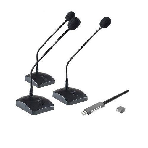 - Gồm 3 micro cổ ngỗng không dây và 1 bộ thu phát kết nối với máy tính qua cổng USB.
