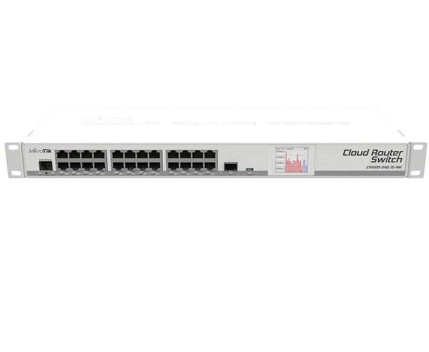- Cloud Router Switch CRS125-24G-1S-RM là dòng thiết bị chuyển mạch thông minh (Smart Switch) mới của Mikrotik. Nó là một bộ chuyển mạch với đầy đủ các tính năng Layer 3, và cũng được hỗ trợ bởi hệ điều hành RouterOS quen thuộc. Tất cả các tùy chọn cấu hình chuyển mạch đều được thể hiện rõ ràng, đặc biệt hơn là hoàn toàn có thể thay thế đặc tính của các port từ cấu hình chuyển mạch sang sử dụng cho các mục đích định tuyến.