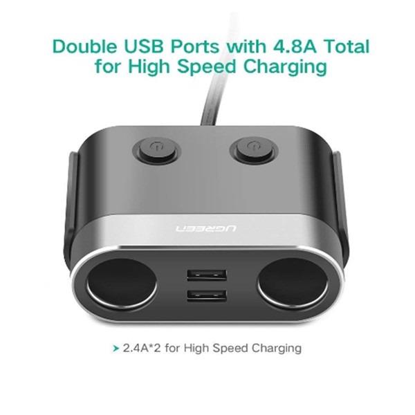 Tẩu sạc chia nguồn 12V 24V x2 2 USB DC5V-2.4A sử dụng trên xe hơi & xe khách UGREEN 30516