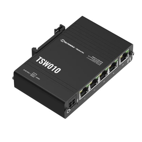 - Switch công nghiệp Teltonika TSW010 mang đến các giải pháp hợp lý để mở rộng kết nối mạng đến các thiết bị Ethernet khác nhau. 5 cổng Ethernet 10/100Mbps có vai trò đảm bảo kết nối luôn được ổn định và đáng tin cậy, đáp ứng được hầu hết các ứng dụng công nghiệp không yêu cầu thông lượng cao với chi phí hợp lý.