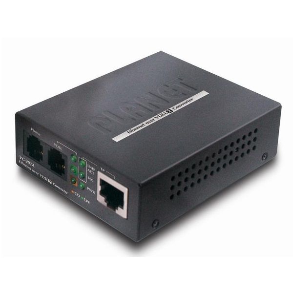 Thiết bị Planet chuyển đổi từ Ethernet sang VDSL VC-201 với hiệu suất cao. Thiết bị được thiết kế dựa trên 2 công nghệ mạng chính Ethernet và VDSL2 (Tỉ lệ truyền dữ liệu tốc độ cao trên đường thuê bao kênh số 2 ). Công nghệ VDSL2 cho phép tốc độ truyền dữ liệu tốc độ cao thông qua đường cáp đồng điện thoại mà không cần đi dây lại. Thiết bị VC-201A hỗ trợ hiệu suất cao với hệ thống mạng dây điện thoại với tốc độ lên tới 100/ 55Mbps bất đối xứng với khoảng cách 200m và 25/ 4 Mbps cho khoảng cách xa khoảng 1,6 km.